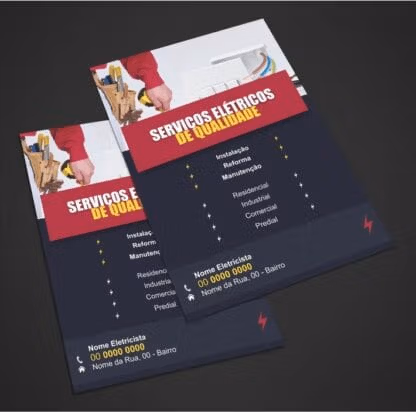 A concorrência é grande, portanto, você precisa se divulgar. Faça isso usando um dos 2 designs de panfletos para eletricista que temos aqui.
